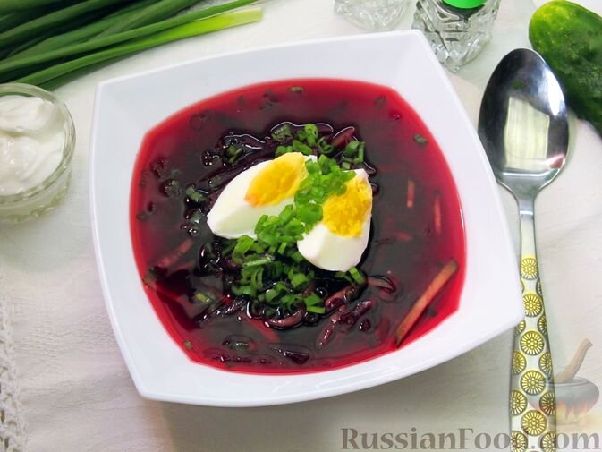 - Ингредиенты: говядина, огурцы, редис, яйца, чеснок, зелёный лук, зелень укропа и петрушки, соль, кефир.