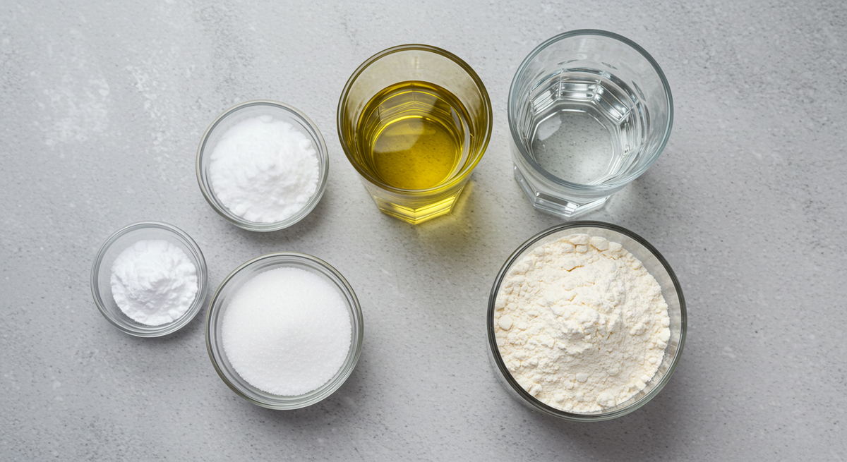 Приступим к приготовлению: в глубокой миске просеиваем муку, чтобы она насытилась воздухом и стала легкой, как облачко. Затем добавляем соль и разрыхлитель в образовавшуюся ямку, после чего постепенно вливаем прохладную воду.
