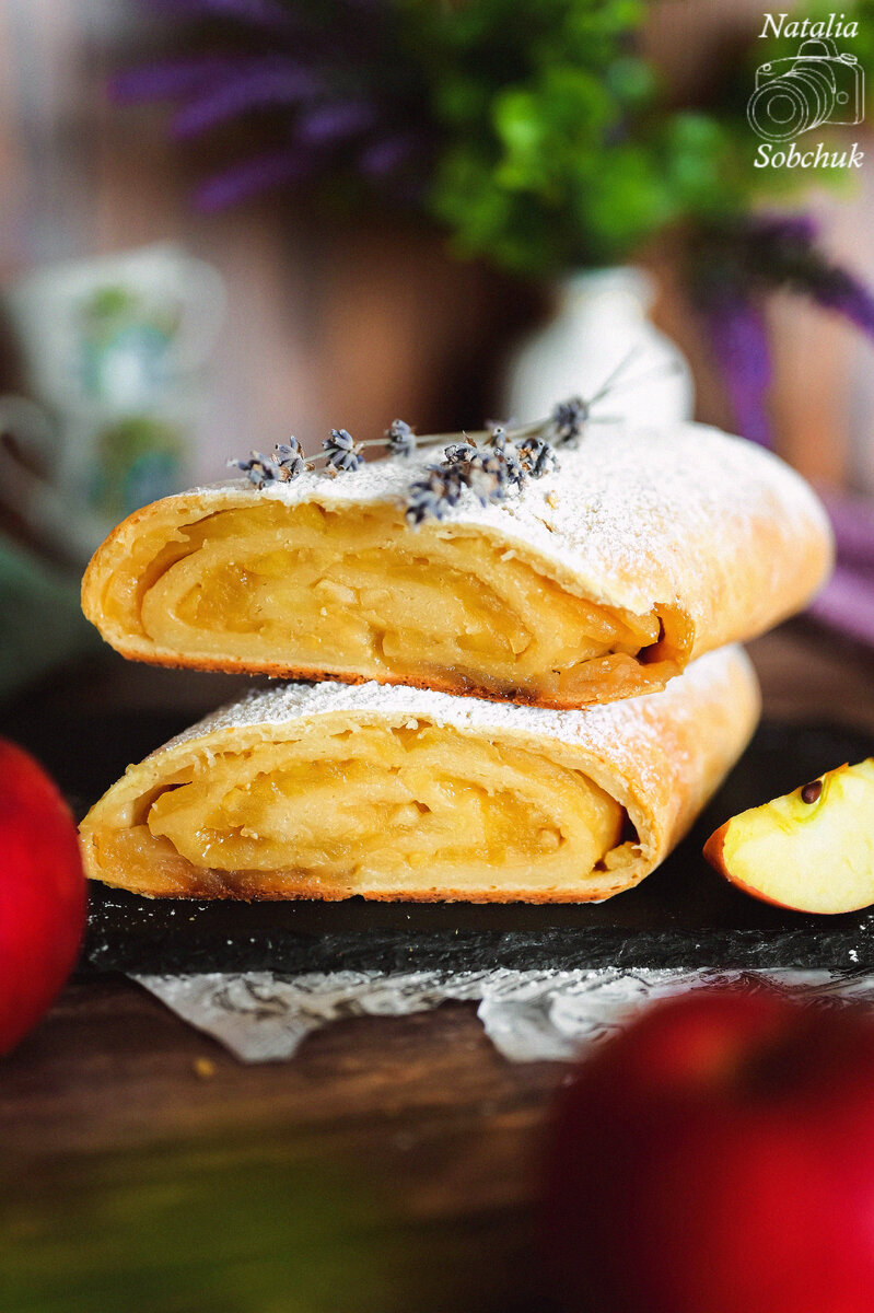 Пробовав этот вариант, невозможно остаться равнодушным. В результате получается удивительный рулет с тонкой, хрустящей корочкой и сочной, ароматной начинкой из яблок. Такой десерт станет настоящим украшением любого стола и доставит удовольствие как вам, так и вашей семье, особенно в сочетании с порцией сливочного мороженого. Приготовление этого штруделя — простое и увлекательное занятие.