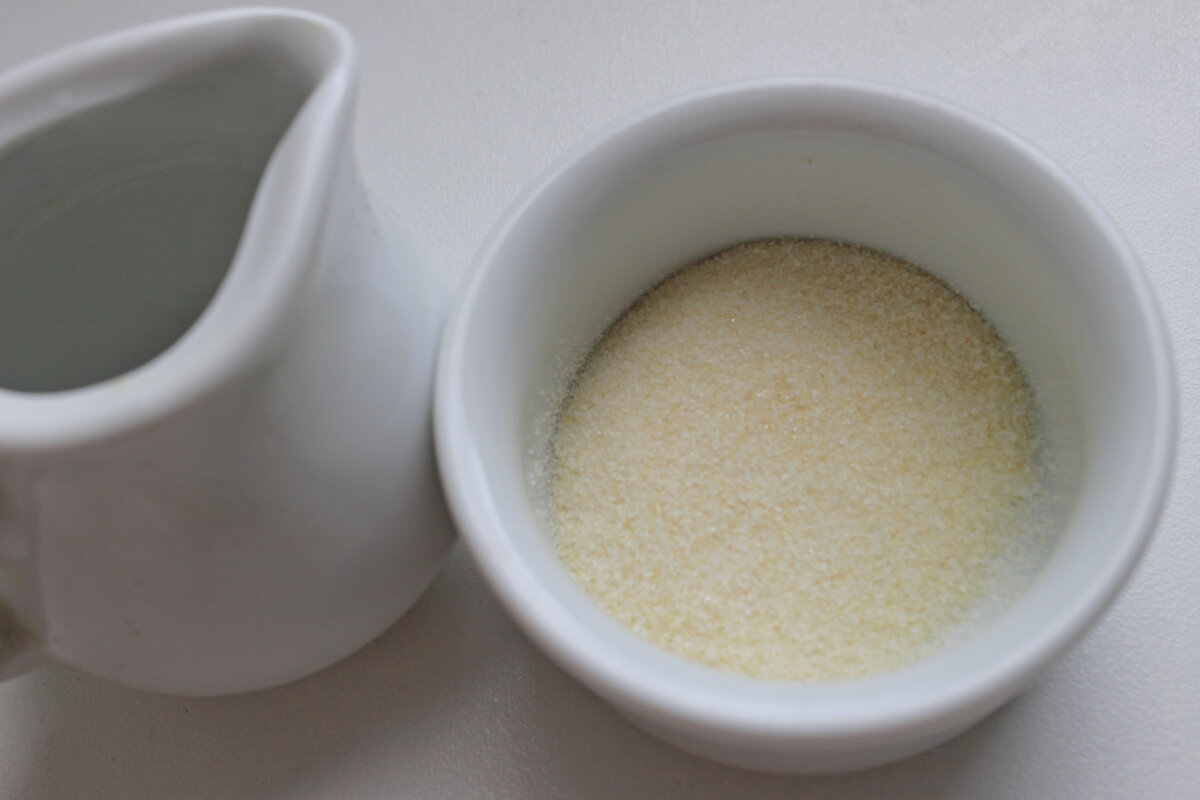 Начнем с подготовки желатина: его лучше растворять на водяной бане, что гарантирует полное растворение без комков. Затем в ряженку необходимо добавить сахар и влить готовый желатин. После этого добавляется кофе — его можно заранее диализовать для лучшей растворимости. Полученную массу нужно разлить по формочкам и отправить в холодильник на полтора часа, но можно упростить задачу и убрать в морозильник — так вы сэкономите время.