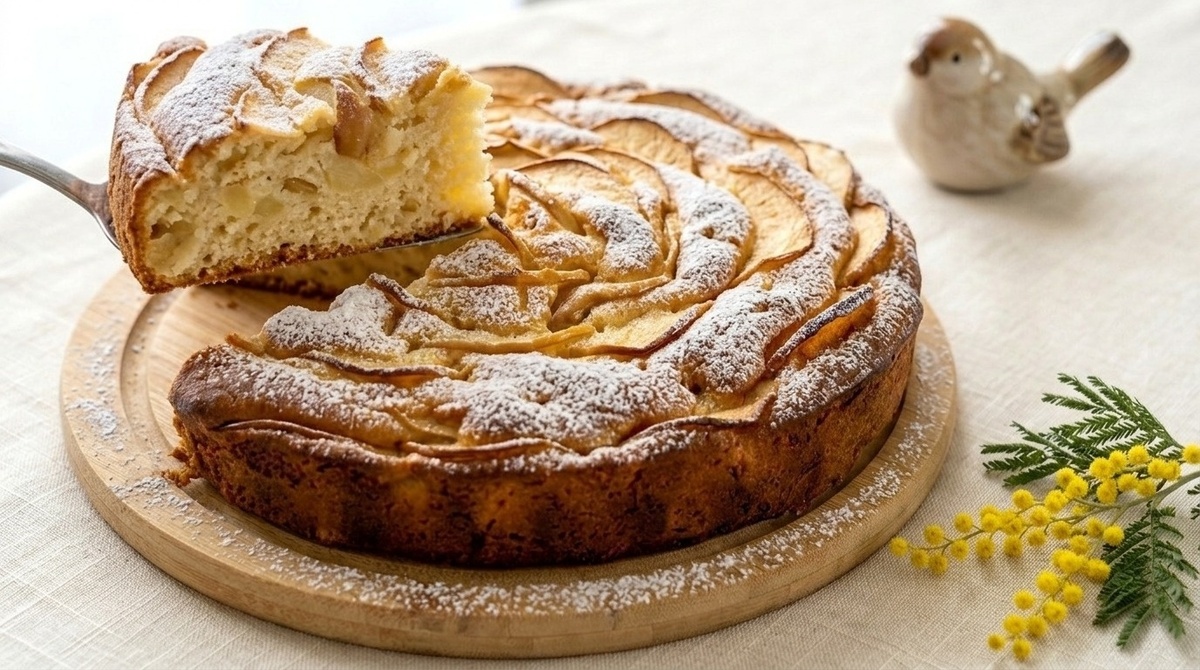 Дать пирогу немного остыть в форме, около 15-20 минут, затем освободить от формы и присыпать сахарной пудрой. Самое удивительное, что на следующий день он станет еще вкуснее, так как яблоки отдадут всю свою сладость тесту.