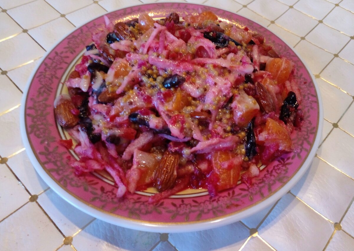 Этот салат — настоящая находка для зимнего меню! Легкий, ароматный и невероятно вкусный, он прекрасно подходит для тех дней, когда хочется чего-то свежего и аппетитного. В холодное время года, когда классику — мясо и рыбу — иногда хочется отложить, такой яркий и насыщенный салат станет настоящим бальзамом для души.