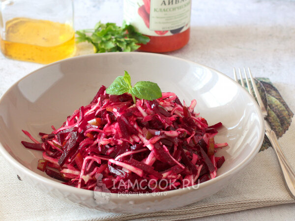Как приготовить свекольный салат с маринованными огурцами и капустой