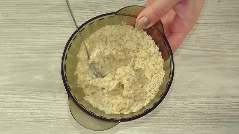 Всё смешайте с двумя яйцами и овсянкой. Для достижения нужной консистенции добавьте немного муки. Чаще всего потребуется не более столовой ложки.