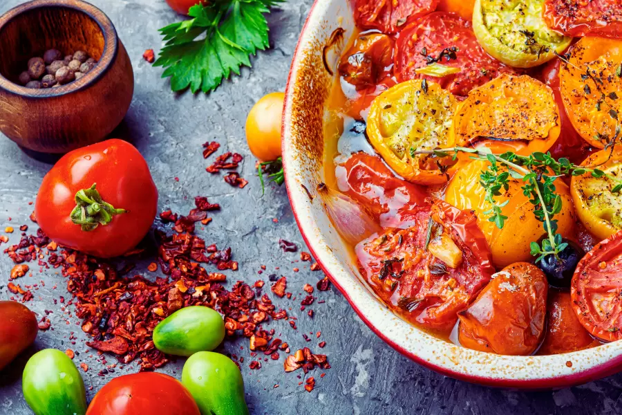 С каждым днем лета на рынок поступает все больше сладких, сочных помидоров. В это время года они особенно хороши, и просто невозможно не наслаждаться их свежестью. Однако, чтобы удивить своих близких и добавить разнообразия на стол, стоит попробовать запеченные томаты с пряными травами.