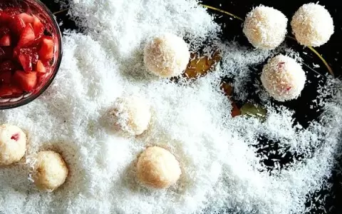 На вашей кухне могут появиться восхитительные конфеты Beijinhos из Бразилии. Это название переводится с португальского как “маленький поцелуй”, и действительно, в самом центре этих кокосовых трюфелей скрывается сладкий секрет — ароматные кусочки свежей клубники, которые добавляют яркий вкус и наслаждение каждому угощению.