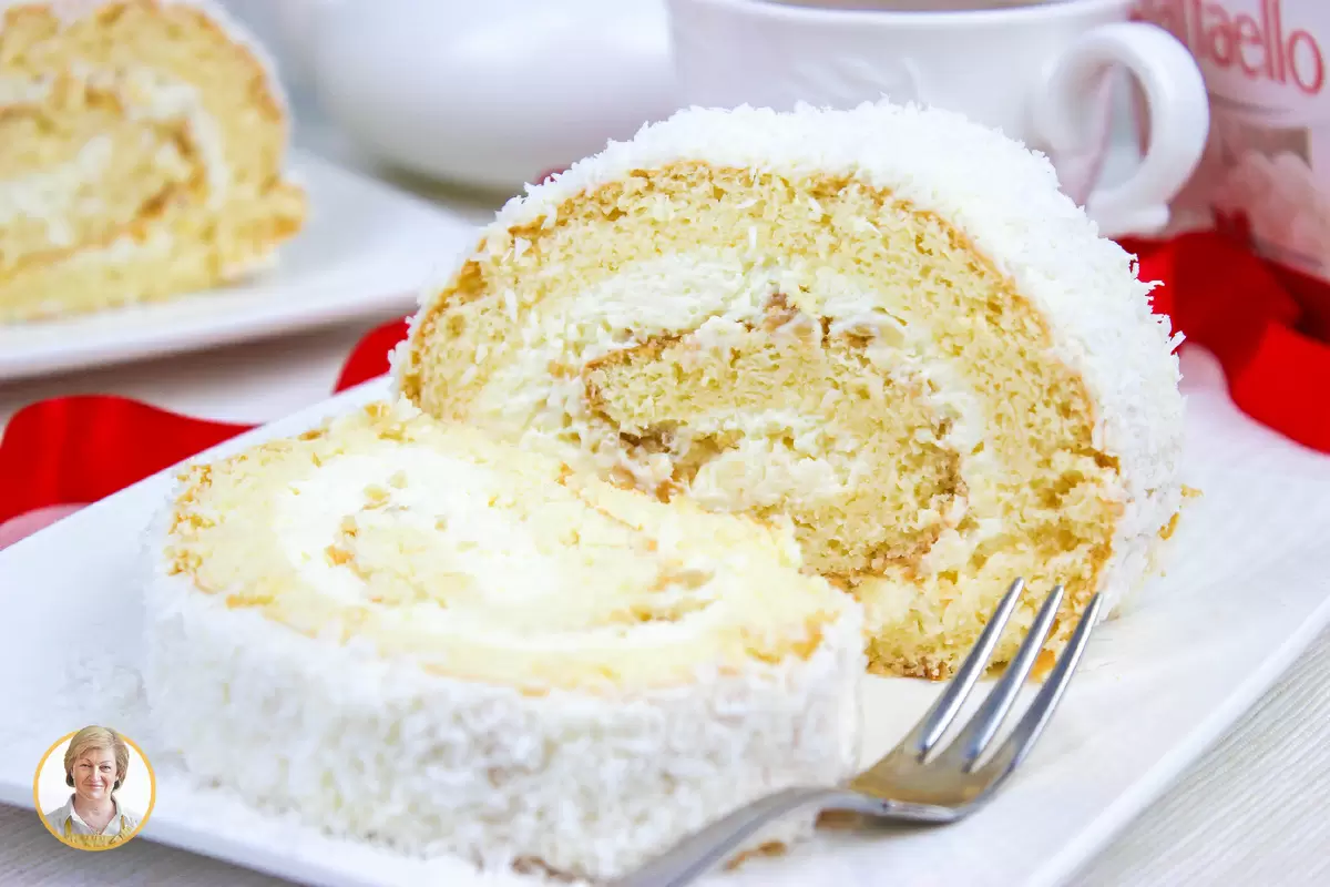 Сочетание текстур и вкусов в этом десерте не оставит равнодушным ни одного гурмана! Невероятно легкий бисквит, насыщенный крем с кокосом и миндалем, обсыпанный кокосовой стружкой — это идеальный вариант для праздничного стола. Рулет Рафаэлло получается не только нежным и ароматным, но и очень аппетитным. Такой десерт обязательно удивит и порадует ваших близких!