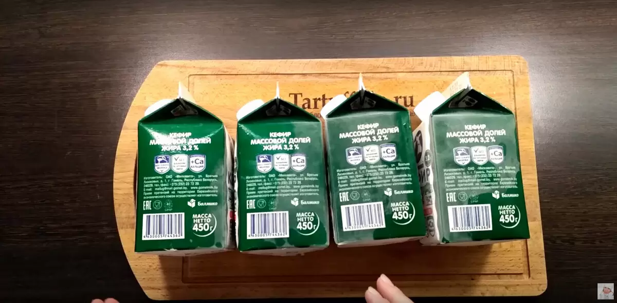 Основным ингредиентом для этого творожного сыра является кефир. Рекомендуется использовать кефир с жирностью 3,2%, и для данного рецепта понадобятся четыре упаковки по 450 граммов.