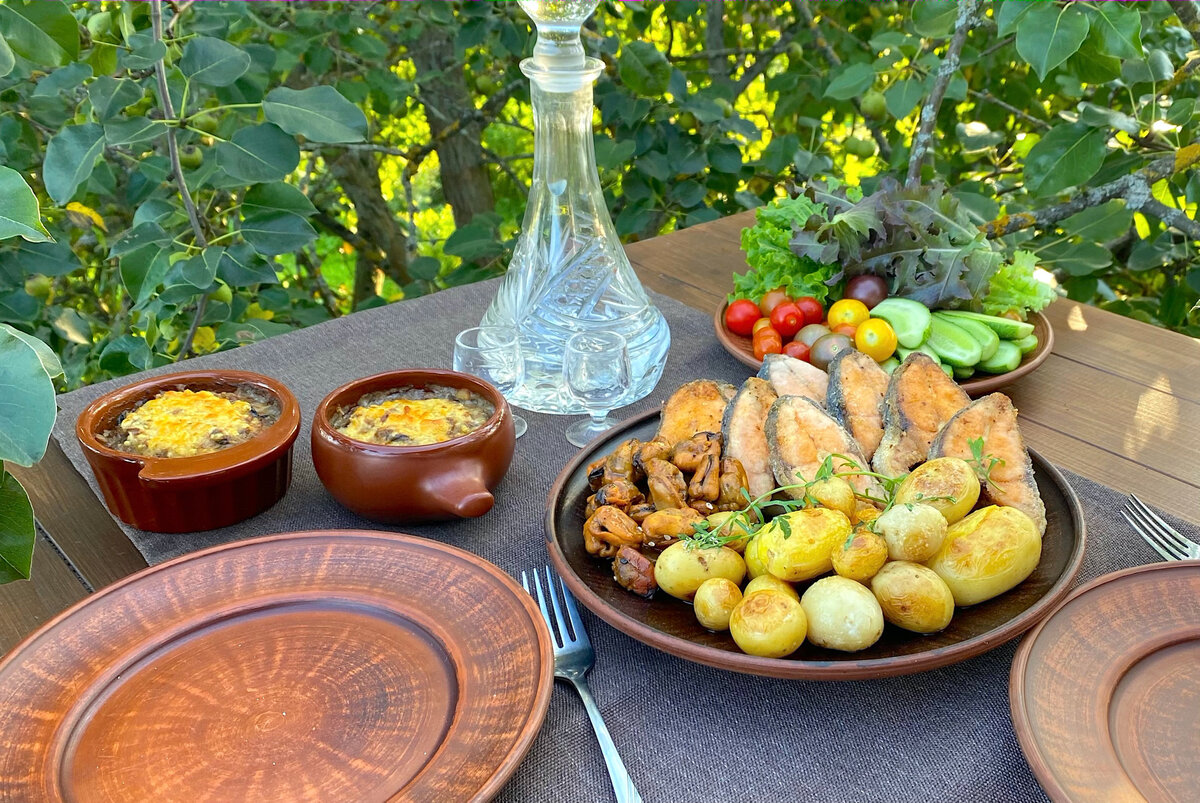 В дачный день можно собирать урожай и готовить блюда из свежих ингредиентов. Например, маленький картофель, сваренный в мундире, а затем обжаренный на сливочном масле, станет отличным гарниром. В этом году сад дал обильный урожай, и помидоры продолжают радовать своими плодами, хотя свежие, к сожалению, не хранятся долго.