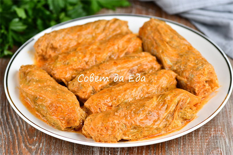 Закрепите фарш на нежных листьях капусты, равномерно распределив его, и аккуратно сверните рулетики, оставив концы открытыми. Поместите рулетики в высокую сковороду или жаровню. Далее приготовьте соус: смешайте три столовые ложки сметаны, три чайные ложки томатной пасты, одну чайную ложку сушеного чеснока, смесь перцев, щепотку сахара и две щепотки соли. Залейте рулетики соусом, доведите до кипения и томите на медленном огне около 30 минут. Блюдо будет нежным, сочным и ароматным.