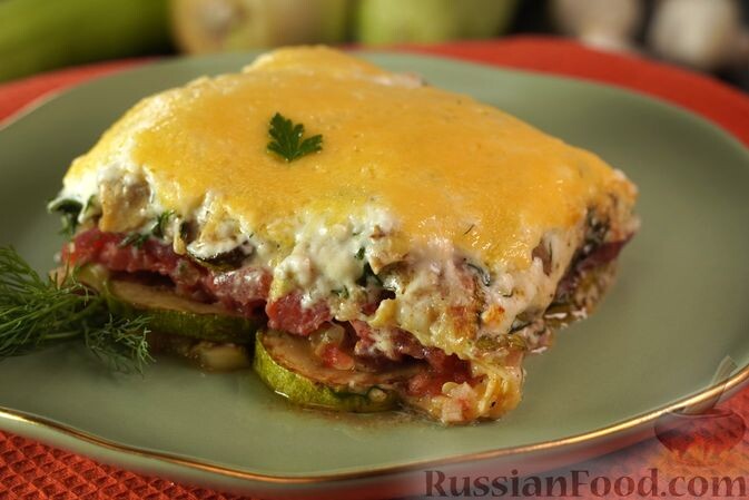 - Запеканка из кабачков с помидорами и беконом. Это блюдо сочетает нежные кабачки, сочные помидоры и ароматный бекон, создавая насыщенный вкус. Сливочный соус бешамель делает запеканку особенно нежной и аппетитной.
