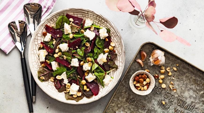 Рецепт салата из запеченной свеклы с адыгейским сыром