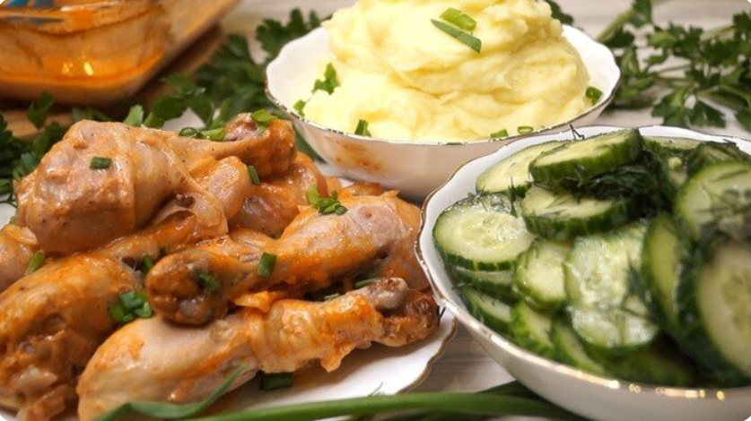 - Ужин: Запеченная курица с картошкой.