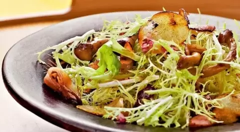 Этот восхитительный тёплый салат станет настоящей находкой для гурманов. Сочетание свежих лесных грибов и нежного салата фризе создаёт уникальный вкусовой букет, идеально подходящий для обеда или лёгкого ужина.