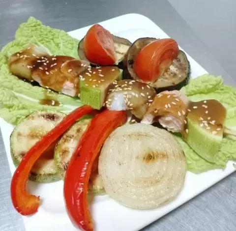 Авторский рецепт шашлыка из рыбы с овощами гриль под терияки