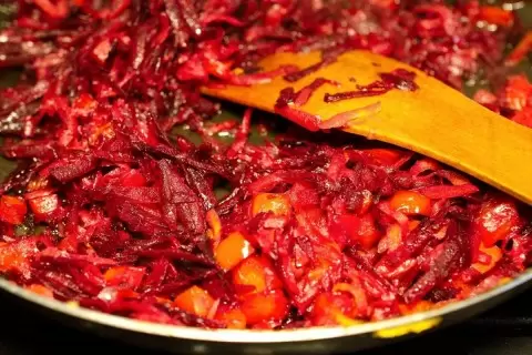Одной из основных ошибок является отказ от пассеровки овощей. Их не следует жестко обжаривать; вместо этого они должны томиться на слабом огне. Это позволяет сохранять вкус и цвет овощей, особенно свеклы, которая должна оставаться яркой и рубиновой. Оптимальная температура — чуть ниже среднего, чтобы избежать подгорания и потери аромата.
