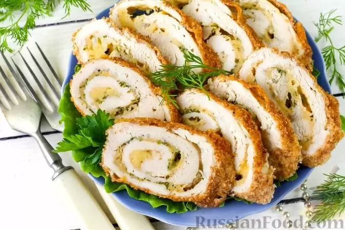 Куриный рулет с сыром и зеленью