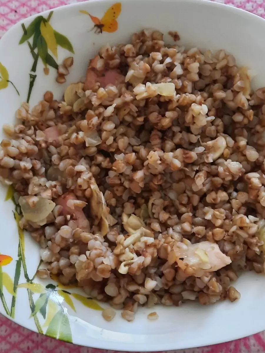 Вкусный завтрак для диабетиков: гречневая каша с грибами и беконом
