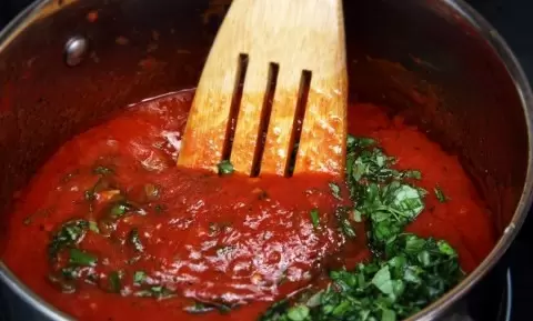 Для начала нужно сосредоточиться на соусе. Грецкие орехи следует измельчить, чтобы получить около полстакана ореховой массы. Можно использовать мясорубку или толкушку. Затем смешать орехи с двумя зубчиками чеснока, пропущенными через пресс, и мелко нарезанной кинзой. Постепенно добавляйте томатный соус, пока не добьетесь нужной консистенции, и добавьте соль по вкусу. Оставьте соус настаиваться, чтобы ароматы смешались.