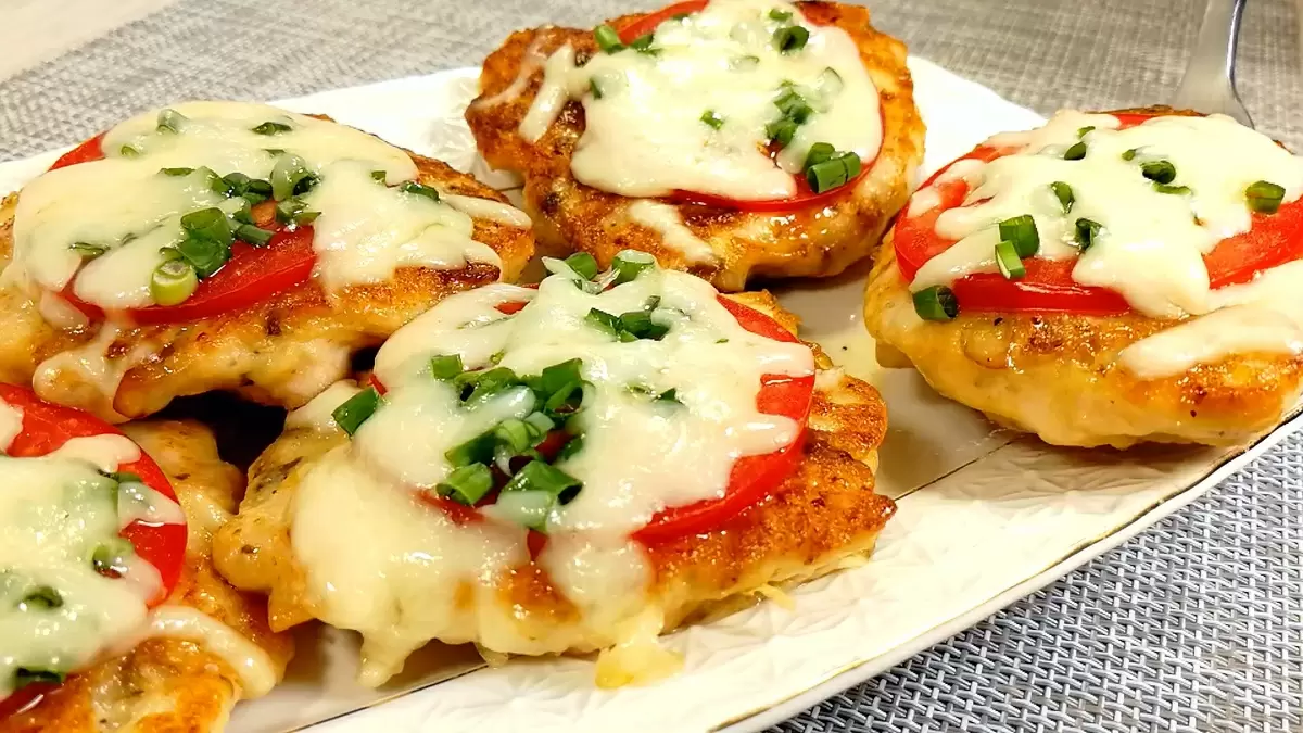 - На сковороде: Формируйте котлеты и обжаривайте на сковороде с обеих сторон. В конце добавьте кружочек помидора, лук и сыр, накройте крышкой, чтобы сыр расплавился.
