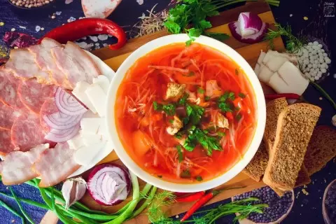 Каждая семья хранит свою версию рецепта борща, и этот популярный суп олицетворяет настоящую украинскую кухню. Настоящий борщ считается символом домашнего уюта: насыщенный, ароматный и сытный, он стал любимым у многих. Параллельно с традиционными ингредиентами, добавление сала, черного хлеба и свежего ялтинского лука делает это блюдо поистине неповторимым. А полезность борща от овощей и корнеплодов только добавляет ему привлекательности.